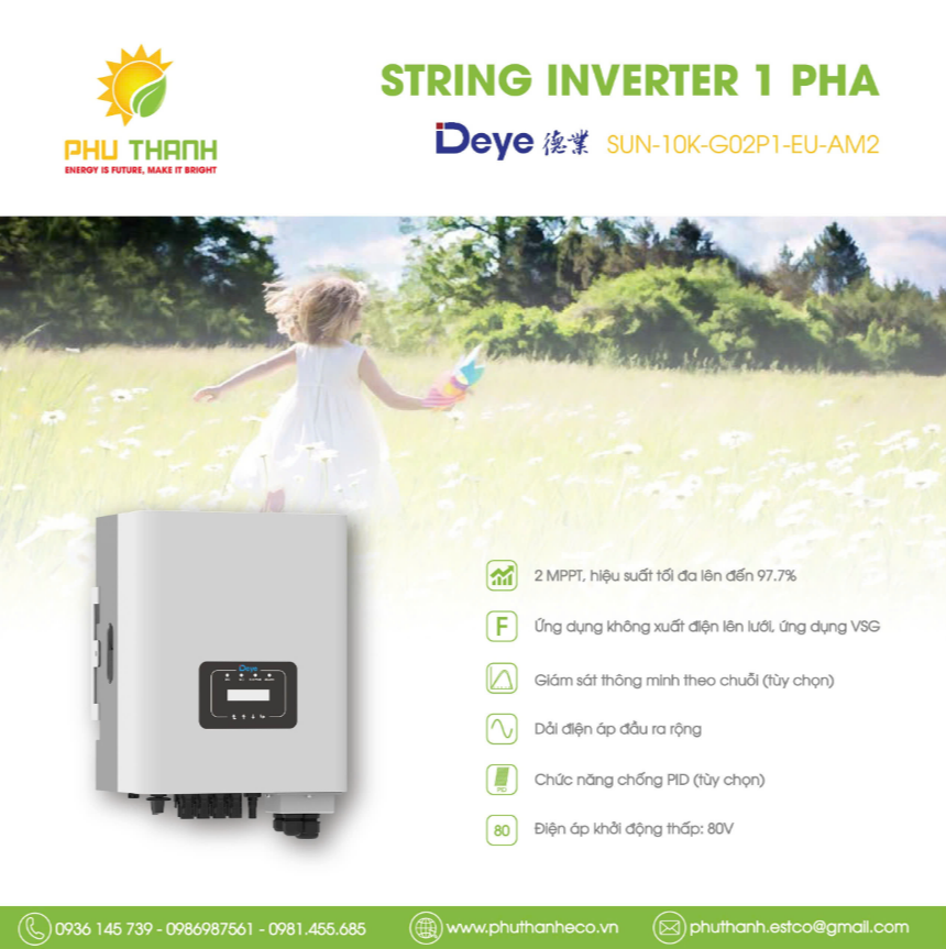 Inverter Deye hòa lưới 1 pha 10kW là thiết bị quan trọng trong hệ thống điện mặt trời dân dụng. Sản phẩm giúp chuyển đổi năng lượng hiệu quả, giảm chi phí điện và đảm bảo nguồn điện ổn định. Với công nghệ tiên tiến, biến tần này mang lại hiệu suất cao, hoạt động bền bỉ và dễ dàng giám sát từ xa.