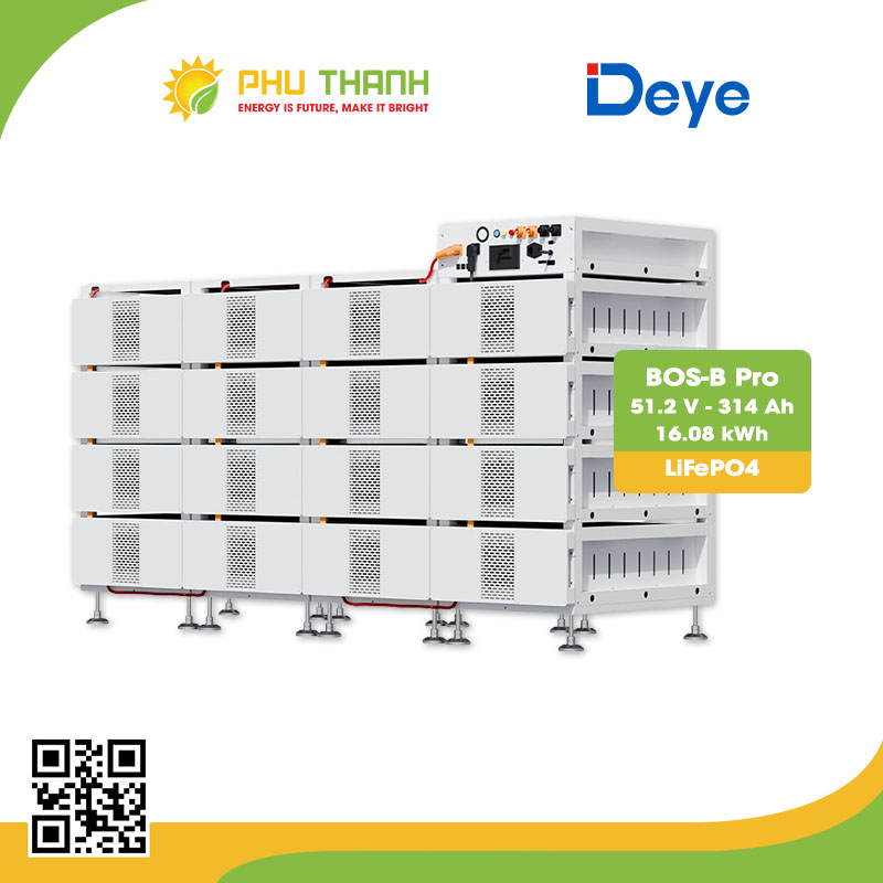 Hệ thống pin lưu trữ Deye BOS-B Pro 51.2V 314Ah là dòng pin lithium cao cấp sử dụng công nghệ LiFePO4, được thiết kế dành cho các hệ thống điện mặt trời thương mại và công nghiệp (C&I ESS). Với khả năng mở rộng linh hoạt, độ an toàn cao và quản lý thông minh, đây là lựa chọn tối ưu giúp doanh nghiệp tối ưu chi phí điện và đảm bảo nguồn điện ổn định 24/7.