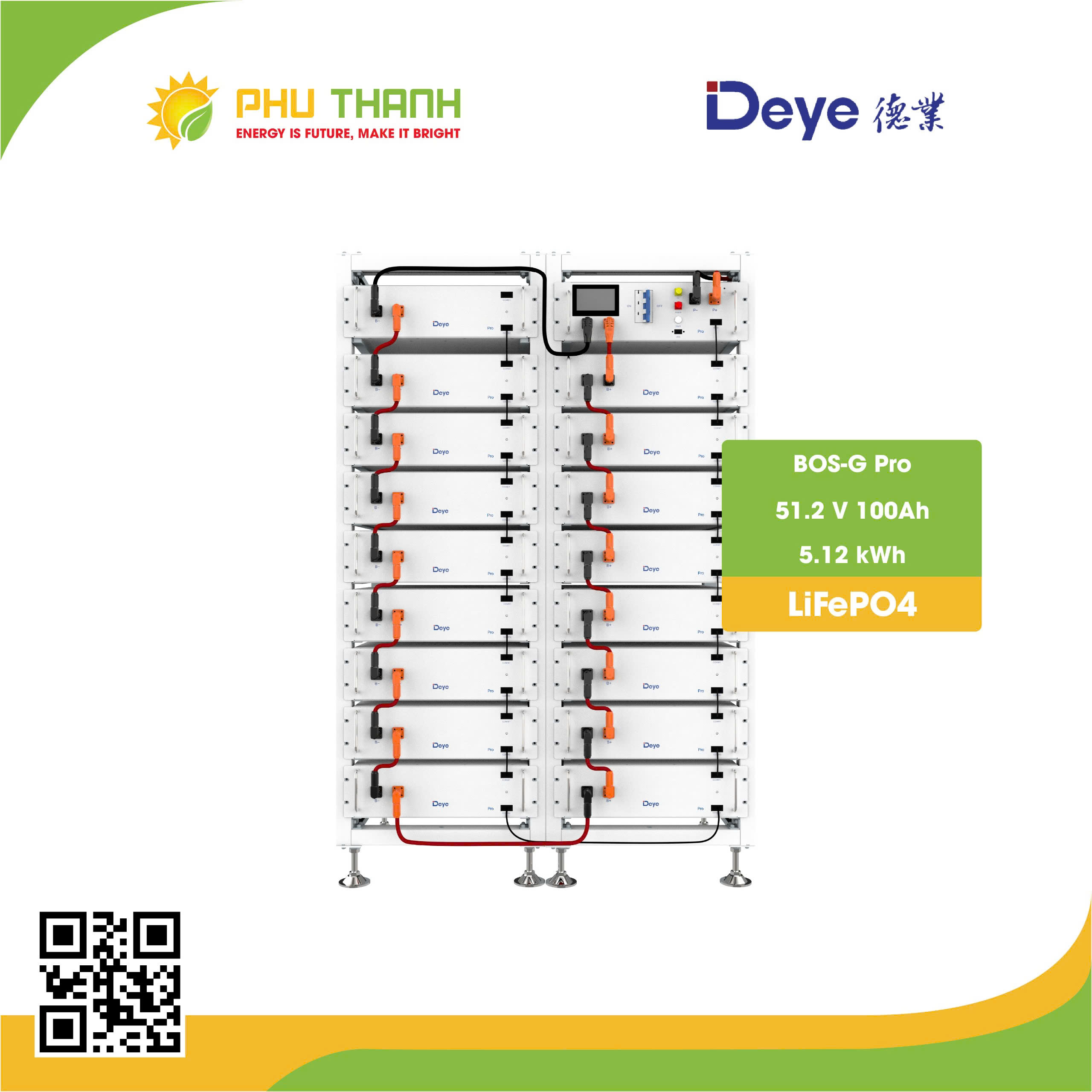 BOS-G Pro là phiên bản pin lưu trữ áp cao chuyên nghiệp của DEYE ESS. Module đơn vị công suất 5.12kWh, điện áp 51.2V và dòng xả 100A. Hệ thống cho phép mở rộng đến 17 module/hệ thống, dung lượng tối đa 87,04KWH. Sử dụng cell pin LiFePO₄ bền bỉ, đảm bảo độ an toàn cao, hiệu suất ổn định và tuổi thọ lên đến 6000 chu kỳ.