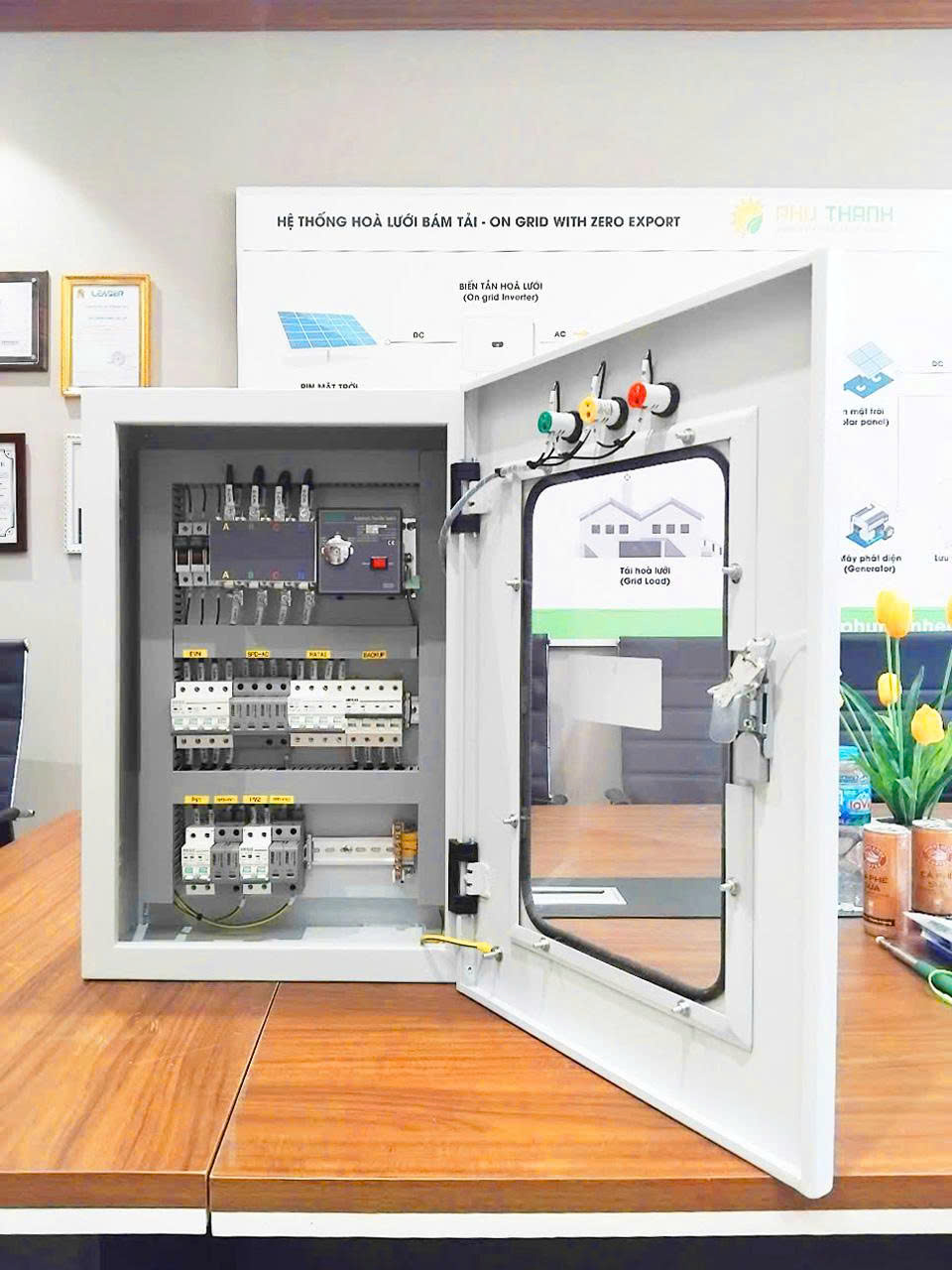 Tủ được tích hợp sẵn MCB, cầu chì, chống sét SPD, vỏ tủ chuẩn IP65, giúp hệ thống hoạt động an toàn, ổn định, dễ thi công và bảo trì.